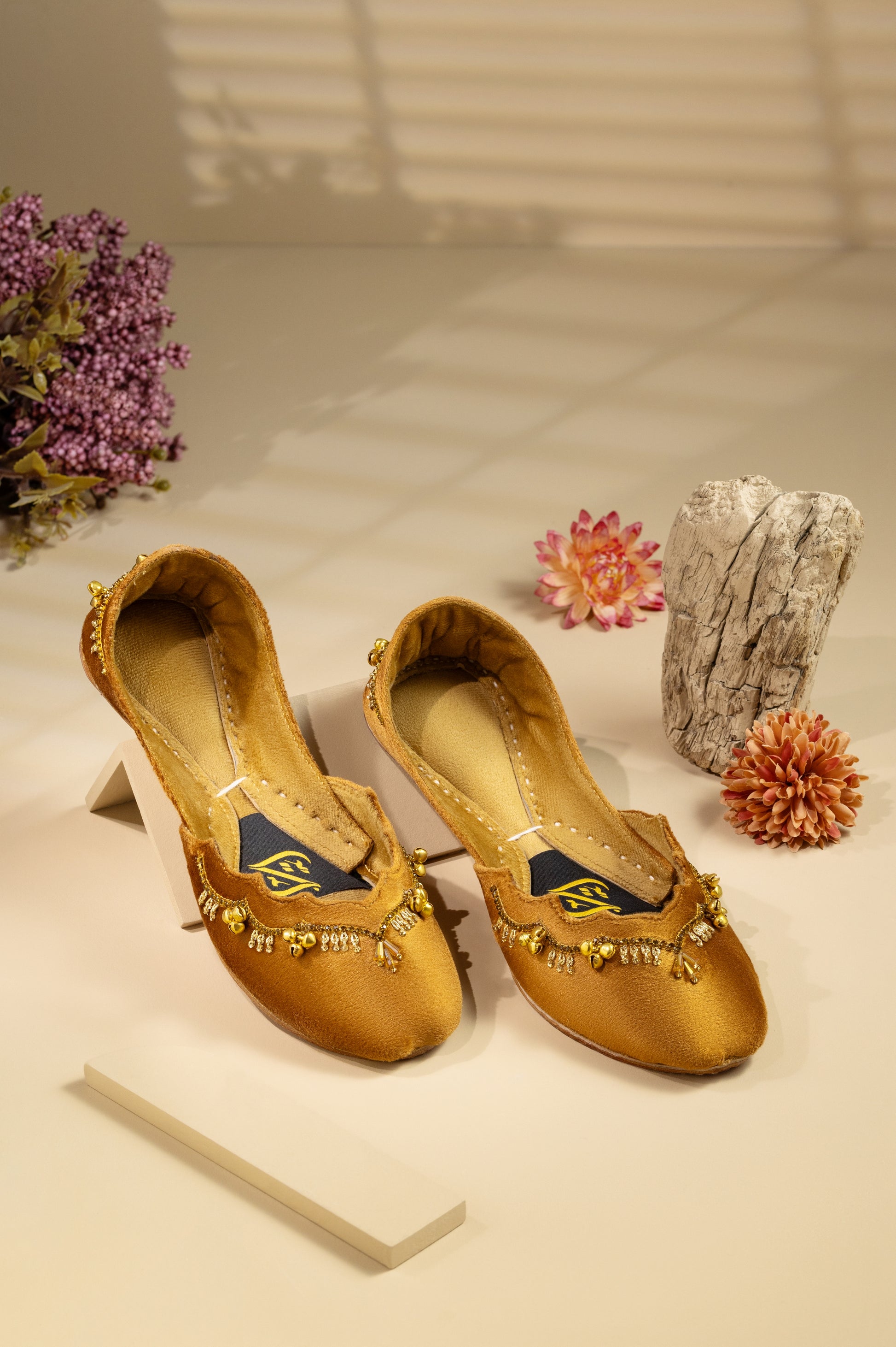 Jahan Ara is a luxurious khussa from our new velvet collection, crafted in rich mustard velvet. It features intricate embroidery paired with delicate ghungroos, along with detailed handwork on the back. Perfect for festive and formal occasions. A blend of tradition and timeless style.