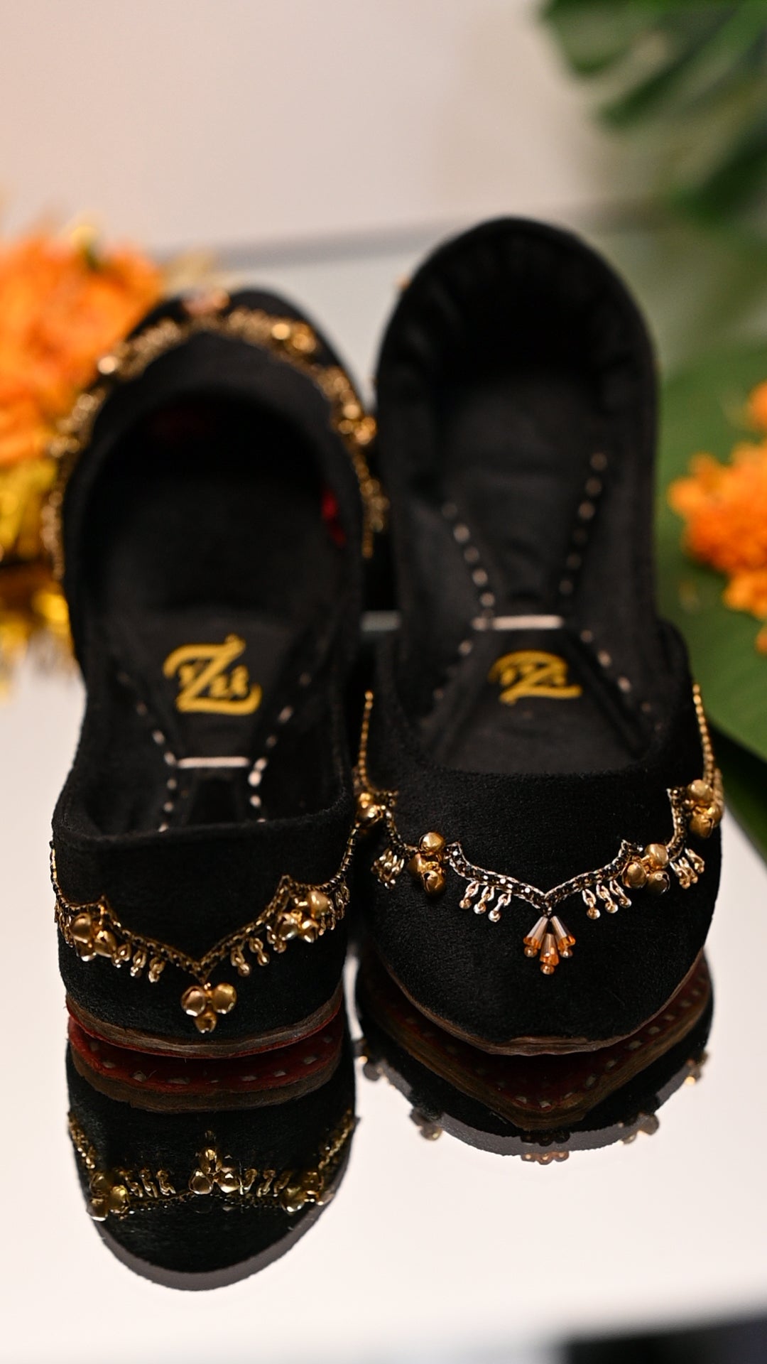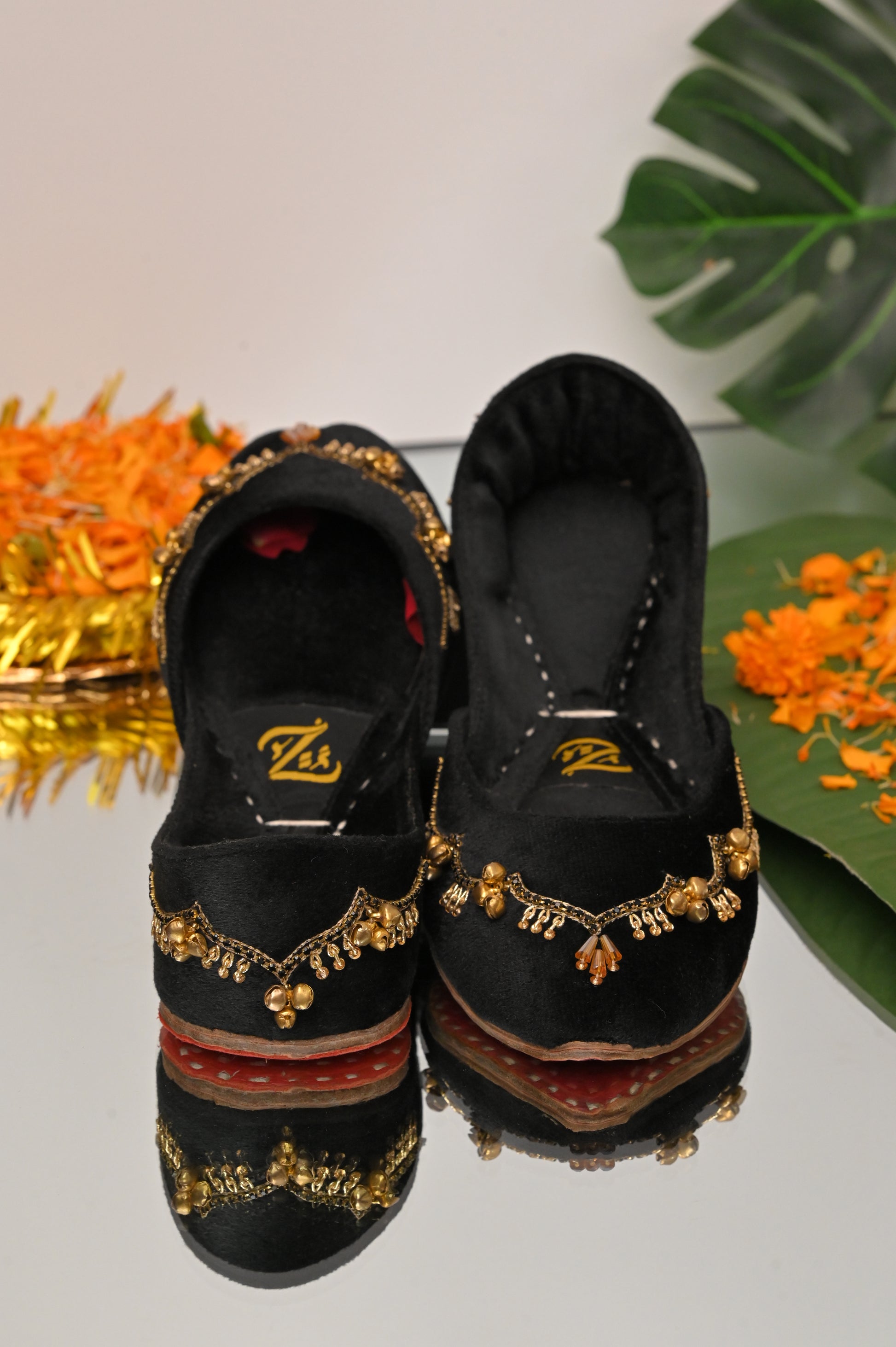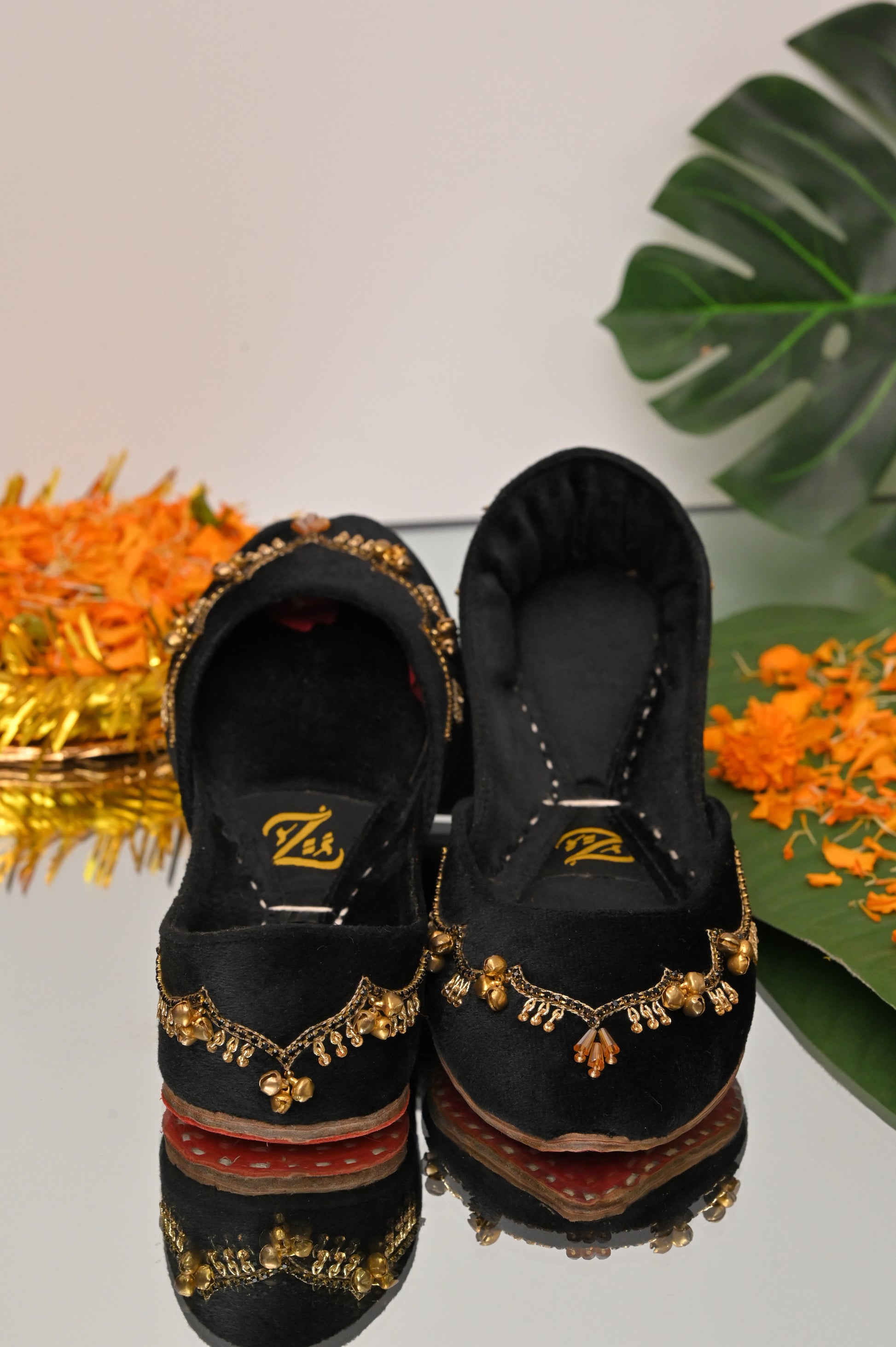 Step into timeless elegance with our handcrafted Black velvet khussa, adorned with delicate ghungrooz that add a soft, melodious charm to every step. The deep velvet hue symbolizes love and celebration, making it the perfect choice for festive occasions, weddings, or evenings when you want your style to speak of tradition with a modern touch. Designed with comfort and craftsmanship at its heart, this piece blends luxury with heritag.